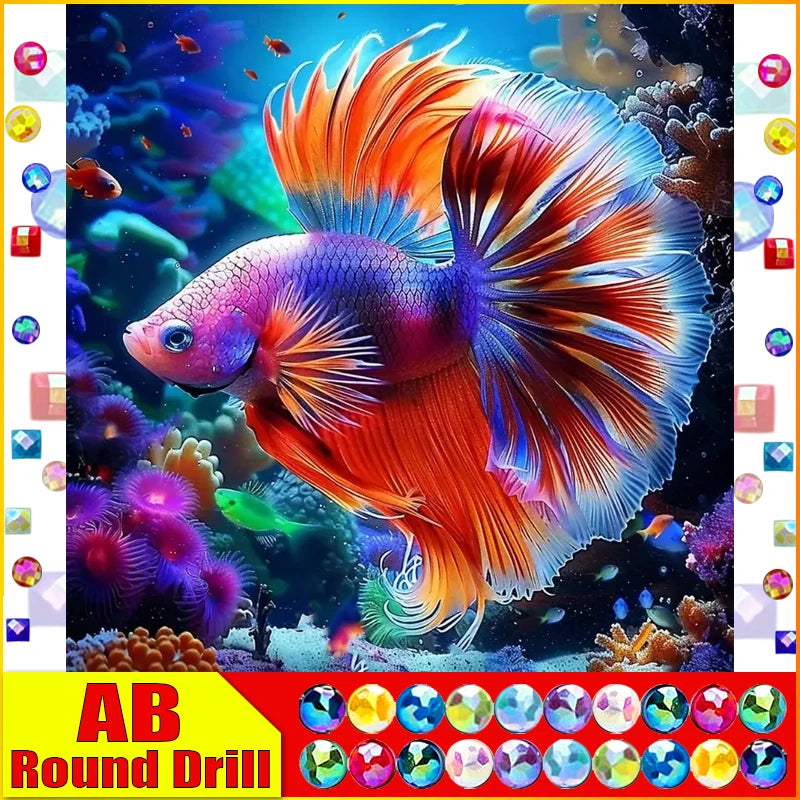DIY Abstract Diamond Painting - AB Round/Square or Fairy Dust Round/Square Diamonds, Neon Goldfish
