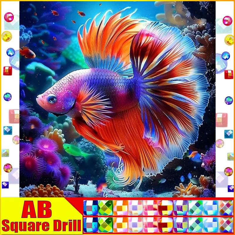 - DIY Abstract Diamond Painting - AB Round/Square or Fairy Dust Round/Square Diamonds, Neon Goldfish