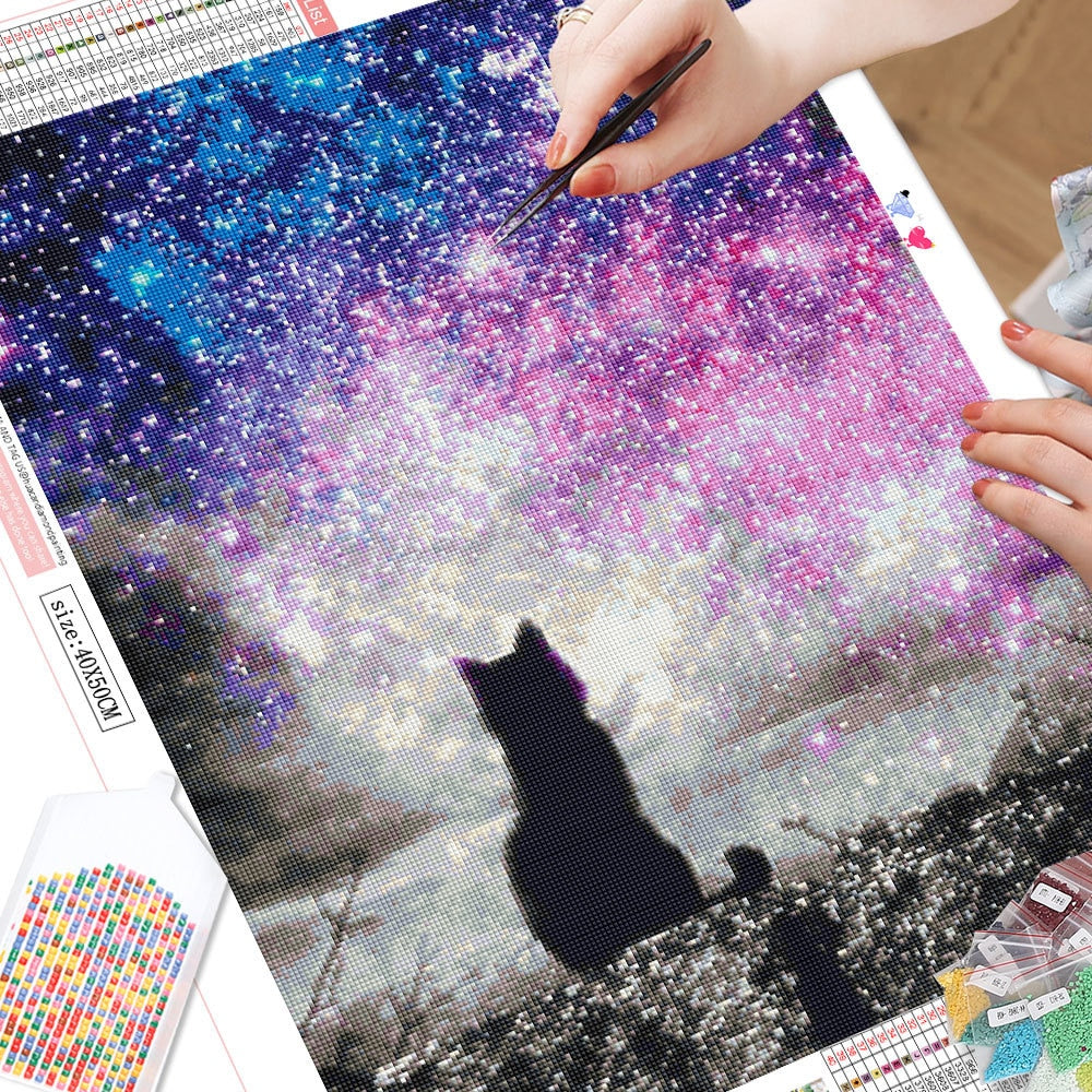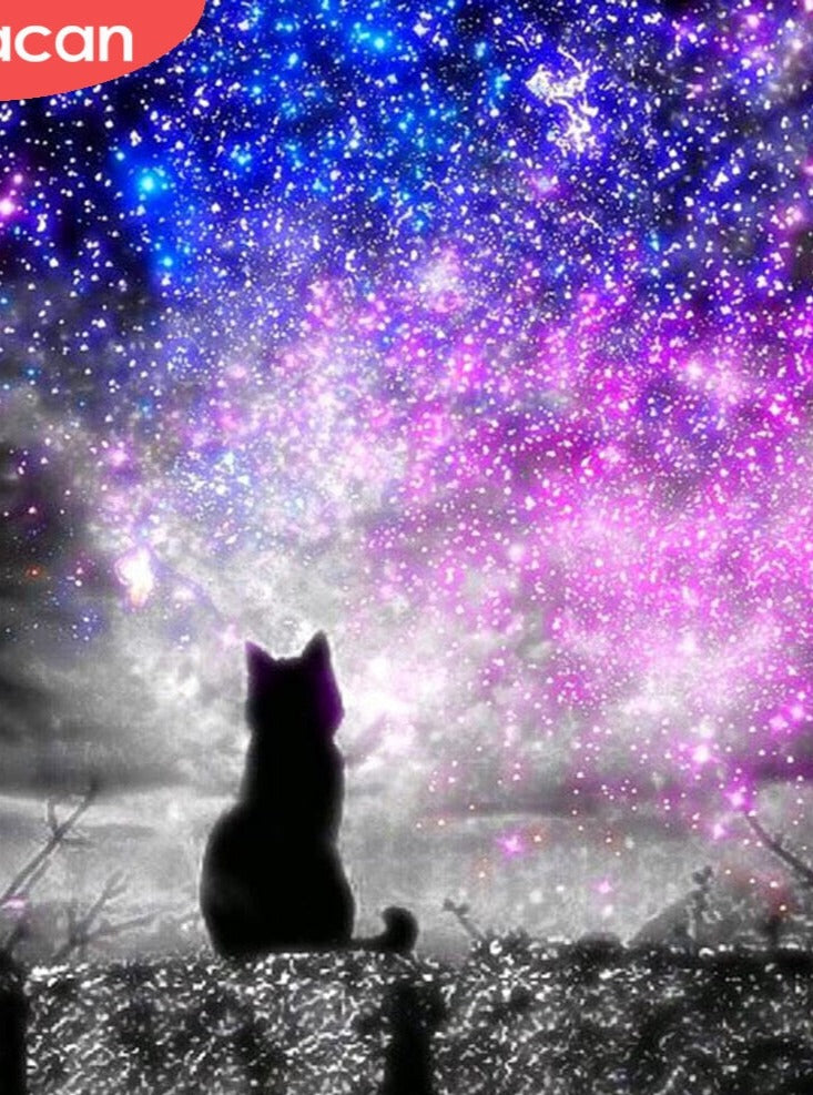 - Cat And Night Sky - Animal Diamond Painting, Full Square/Round 5D Diamonds