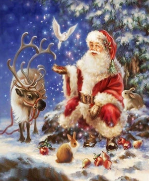 - Kris Kringle Feeding Animals | Christmas Diamond Painting | Full Round/Square Drill 5D Rhinestones | DIY Holiday Kit