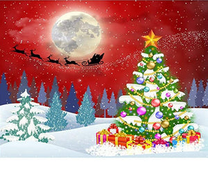Santa Claus And His Reindeer Soar Through The Sky To Deliver Presents For Christmas In This Holiday Diamond Painting. Kits Available In Multiple Canvas Sizes In Full Square or Round Diamond Drills.