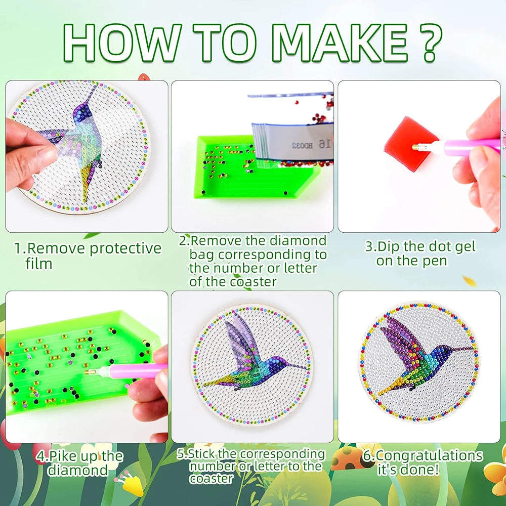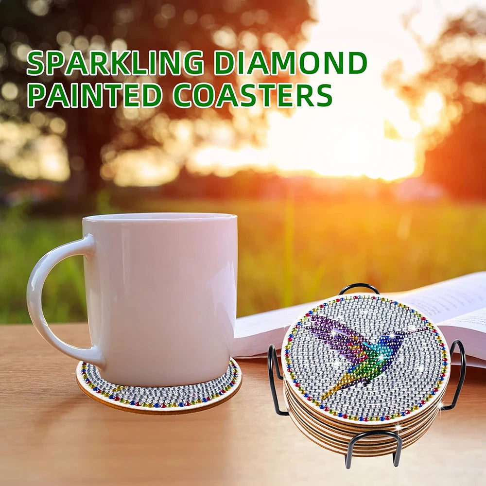 - DIY Animal Diamond Art Coasters, 10 Piece Set With Holder, Variety Hummingbird Designs