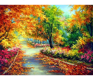 5D DIY Diamond Painting "Autumn Stroll", Full Square Diamond Cross Stitch, Rhinestone Mosaic
