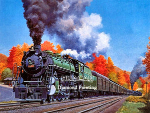 Seasonal Fall Foliage Provides An Amazing Contrast Between The Beauty Of Nature And The Achievements Of Man As Smoke Billows Out Of The Locomotive Smoke Stack - Full Round/Square Drill 5D Diamonds On Full Pasting Area With Several Canvas Sizes To Choose From - Please Check Out Our Other Wonderful Train Diamond Paintings In Our Motors Collection