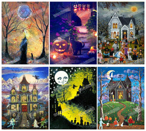 - Halloween Scenery, Diamond Painting Kits, 6 Designs
