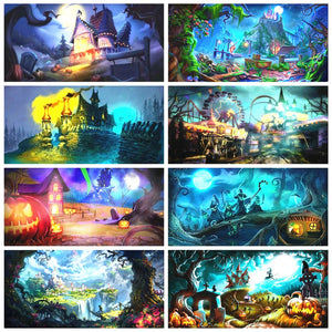 Halloween Full Square Drill Diamond Painting | DIY Holiday Rhinestone Kit | Spooky Scary Haunted House Collection