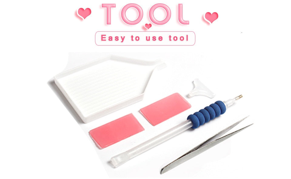 - 1 x Pen - the tool you will be using to transfer the diamonds from the tray onto the canvas. You could also use tweezers (sold separately in most cases).