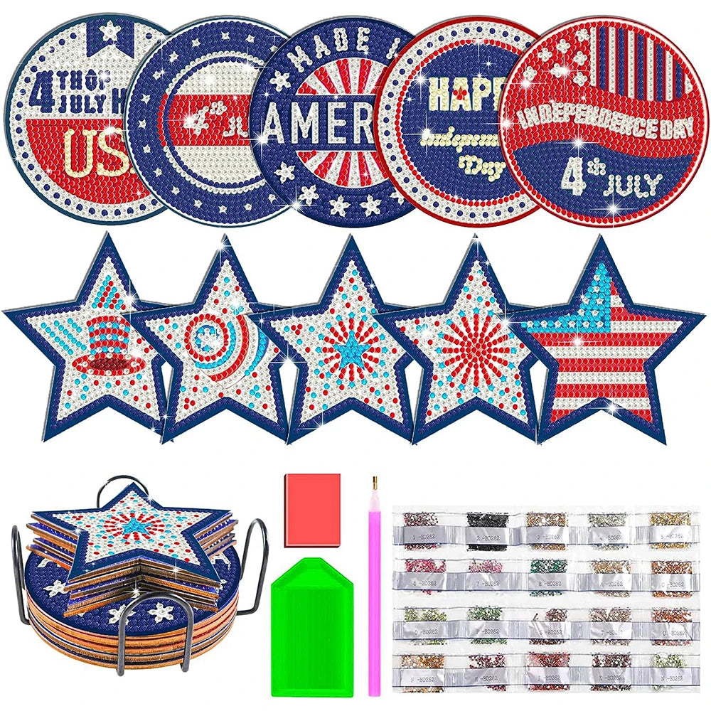 - DIY Patriotic Diamond Art Coasters, 10 Piece Set With Holder, 4th Of July Coasters