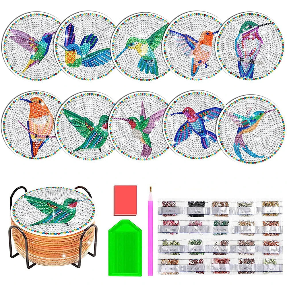 - Complete DIY Kit: Includes everything you need—10 coasters, a holder, clay glue, pen, and diamond tray. Simply peel, place, and enjoy!