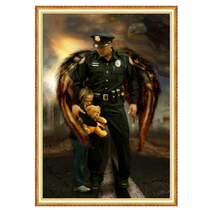 New, "Angel Police" Diamond Painting Kit. First responder DIY Diamond Painting Kit, full pasting area. A great addition to your diamond painting art collection and tribute to those who protect us.